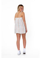 Get ready to romp around in style with the Zamora Woven Romper! Featuring a playful yarn dye woven stripe pattern, this romper is perfect for any adventure. The tie straps add a touch of whimsy, while the on seam pocket provides practicality. And with its relaxed fit, you'll stay comfortable and chic all day long!