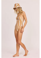 Wave Check Gathered One Piece - Sea Salt