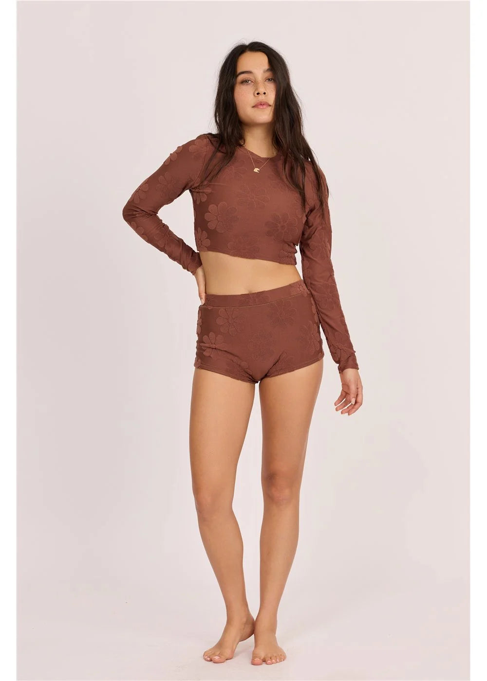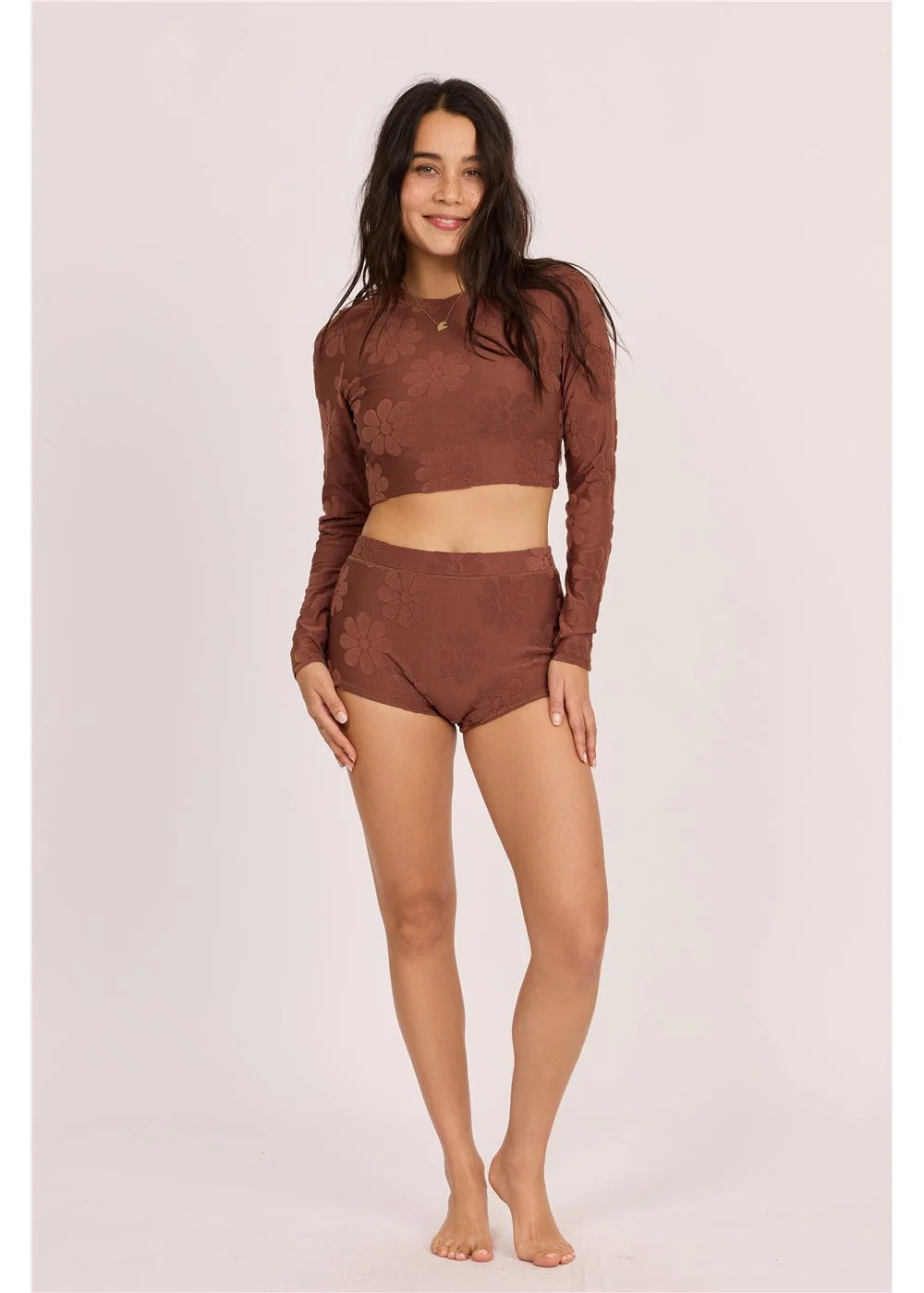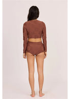 Petal Pusher Crop Rashguard Tops Swim - Espresso Brown